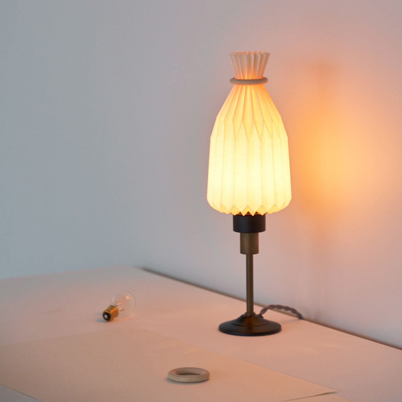 電球は、E17ミニクリプトンタイプのLEDであればどれもお使い頂けますが、色温度と形状、実際の灯りの雰囲気という観点からペーパーランプシェードが最も綺麗に見える電球を選定しています。